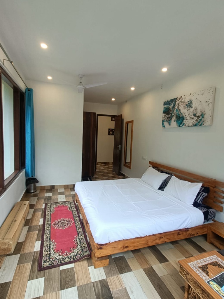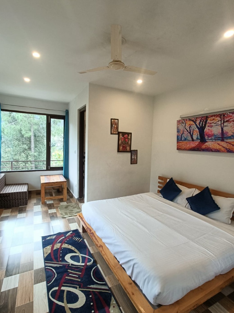 Deluxe rooms in Oaktree Homestay are beautifully designed and offer incredible views from large windows. The rooms here have all the basic comforts, like private bathrooms. This charming stay is known for its family-like atmosphere and services, like arranging local transport to the best attractions and key transport points. Guests can also enjoy evening bonfires or barbecues in a beautiful garden here.