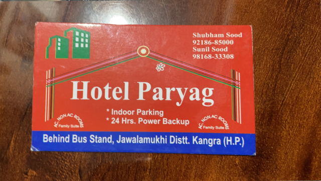 Had a wonderful stay at Hotel Paryag in Jawalamukhi. Great location near the bus stand, friendly staff, clean and cozy rooms with nice town views. Affordable, with ample parking—highly recommended for any traveler.