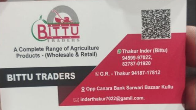 Their shop has a convenient location in Sarwari Bazaar, Kullu, opposite the Canara Bank. Their quality products and reasonable rates compared to other dealers in the local market make Bittu Traders a reliable choice among farmers, gardeners, and other small agricultural product sellers.